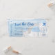 Ein Boarding Pass Flugzeug Ticket Hochzeit in Urlaubsort Save the Date Karte für eine Santorini, Griechenland Hochzeit mit der ikonischen blauen Kuppel Kirche mit Blick auf das ägäische Meer und Klippen. Verwenden Sie das Entwurfstool, um das Design zu verlassen, z. B. Textfarbe, Schriftart und Platzierung, Kartenhintergrund und Flugzeugfarbe. Kontaktieren Sie mich für die Koordination von Gegenständen, die Sie suchen, oder verwenden Sie die "Transfer this design", um Ihre eigenen auf jedem Zazzle-Artikel zu erstellen.