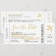 Boarding Pass Flugzeug Ticket Save the Date Einladungskarte für eine Hochzeit in Urlaubsort in Kreta, Griechenland, mit einem romantischen Flugzeugsymbol und verblasster goldener Inselkarte mit modernen, eleganten Skript-Schriftart und auf der Rückseite mit Reise- und Unterbringungsinformationen für Gäste, die ihre Reise planen, um Ihre Hochzeit inmitten eines Urlaubs zu feiern. Eines der vielen Themen der Reise sparen die Daten und Einladungen, die nach der direkten Zusammenarbeit mit kreativen und abenteuerlichen Paaren entstanden sind, die gemeinsam die Welt bereist haben oder sich während ihrer Arbeit in der Reisebranche kennengelernt haben. Wenden Sie sich direkt über den Zazzle Chat an den Zazzle Designer mit Ideen, wie Sie die Vorlage mit Ihren Hochzeitsdetails personalisieren können.