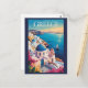 Griechenland Santorini Illustration Travel Art Vin Postkarte