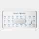 Große und untere Großbuchstaben griechische Buchstaben mit Namen. Vector-Objekt mit benutzerdefinierten Farben für Titel, Buchstaben und Buchstaben. Benutzerdefinierte Hintergrundfarbe.