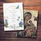 Ein wunderschönes Taufdesign mit blauen Aquarellfarben-Wildblumen, Schmetterlingen, Goldbogen, Goldkreuz und einem griechisch-orthodoxen Symbol der Jungfrau Mary auf der Rückseite der Karte. Ein religiöses Design, ideal für die Taufe eines kleinen Jungen. In der Kollektion dieses Designs kann man die passende Schreibwaren und Dekoration bewundern.