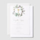 Ein wunderschönes Taufdesign mit Aquarellfarben, Oliven und Grünpflanzen und einem goldenen Kreuz. Ein religiöses Design, ideal für die Taufe eines kleinen Jungen oder Mädchens. In der Kollektion dieses Designs können Sie passende Schreibwaren und Dekoration bewundern.