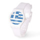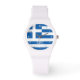 Griechische Flaggenarmbanduhren für Männer und Frauen. Sportliche Uhren mit Flagge von Griechenland. Personalizable mit kundenspezifischem Monogramm.
