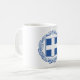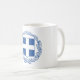 In diesem Design findet sich das Wappen Griechenlands (offiziell als Hellenische Republik bekannt), eines Landes in Südosteuropa. Die Hauptstadt Griechenlands ist Athen, die zugleich die größte Stadt des Landes ist, gefolgt von Thessaloniki. Weitere wichtige Städte in Griechenland sind Patras, Piräus, Larissa, Heraklion, Peristeri, Kallithea, Acharnes, Kalamaria, Nikaia, Glyfada, Volos, Ilio, Ilioupoli, Keratsini, Evosmos, Chalandri, Nea Smyrni, Marousi, Agios Dimitrios, Zografou, Galeo, Nea Ionia, Ioannina, Palaio Faliro, Korydallos, Trikala, Vyronas, Agia Paraskevi, Galatsi, Agrinio, Chalcis, Petroupoli, Serres, Alexandroupoli, Xanthi, Katerini, Kalamata und Kavala. Das Wappen besteht aus einem weißen griechischen Kreuz auf einem blauen escutcheon (ein technischer Begriff für ein heraldisches Schild), umgeben von zwei Lorbeerzweigen.