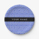 Griechischer Meander Key Blue, Ihr Name, personali Pappteller