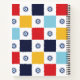 Farbenfrohe, helle Quadrate, dunkelblau, blaue, rote, gelbe, griechische Augen auf den weißen Flecken.