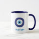 Das böse Augensymbol (Mati). Schutz vor Fluchen. Benutzerdefinierter Text auf beiden Seiten.