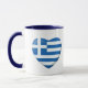 Herzförmige Flagge Griechenlands mit 3D-Schattierung. Benutzerdefinierter Text rechts.