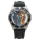Uhr, Vintage Männeruhr mit schwarzem Lederarmband