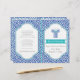 Griechisches Hauptmuster und Blau, Aquakultur Grecian Hochzeitsfeier und gefaltetes Party mit einem Rahmen mit blauer und aqua Kontur, einem Rahmen von griechischem Schlüssel oder Meander oder griechisches Freibordmuster in Blau und Weiß, einem türkisfarbenen Banner und einer blauen, aqua griechischen Säule. Text in grau. Dieses elegante, moderne Design mit Vintagen und antiken Elementen eignet sich für griechische und/oder griechische Hochzeitsfeiern, egal wo sie in Griechenland oder anderswo stattfinden. Man muss sich in der Mitte falten, um ein gefaltetes Programm zu haben. Wählen Sie nur den Papierwerttyp aus, der sich gut faltet.