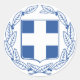 Wappen Griechenlands. Das Wappen Griechenlands zeigt ein weißes Kreuz auf einem blauen Escutcheon, umgeben von zwei Lorbeerzweigen. In der Verfassung ist keine Tinktur für die Äste festgelegt, was eine korrekte (d.h. grüne) Darstellung impliziert. Die griechische Regierung verwendet normalerweise ein Design, in dem die Lorbeerzweige monochrom blau sind. Eine Version mit goldenem Lorbeervogel wird vom Militär und auf dem Präsidentenstandard gezeigt.