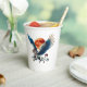Ein Griffin im Stil von Glorantha RuneQuest, der mit gefederten Flügeln fliegt, breitet sich vor einem halbmondförmigen roten Mond im Hintergrund aus.