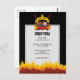 Grillgrill über flammender Holzkohle, Scrollbanner mit individuellem Text über Gabel und Spatel.
