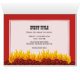 Barbeque Grill über flammender Holzkohle, Scrollbanner mit eigenem Text über gekreuzte Tongs und Pinsel.