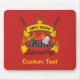 Barbeque Grill über flammender Holzkohle, Scrollbanner mit eigenem Text über gekreuzte Tongs und Pinsel.