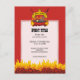 Barbeque Grill über flammender Holzkohle, Scrollbanner mit eigenem Text über gekreuzte Tongs und Pinsel.