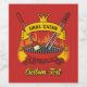 Barbeque Grill über flammender Holzkohle, Scrollbanner mit eigenem Text über gekreuzte Tongs und Pinsel.