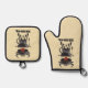 Mitt und Pothalter aus dunklem Elfenbeinofen verfügen über einen Grill mit GRILLEN und Ohrhörnern.