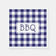 Bereiten Sie sich auf Ihr Grillrestaurant vor, mit Papierservietten mit dunkelblauen, weißen und hellblauen Quadraten in einem klassischen Büffel, kariert mit den Buchstaben GRILLEN in einem weißen Rechteck in der Mitte. Um das Design Navy und White Gingham Muster auf anderen Gegenständen zu sehen, klicken Sie auf den Link "Rocklawn Arts" unten. Digitales Bild. Copyright ©Claire E. Skinner. Alle Rechte vorbehalten.