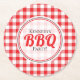 Red Gingham Untersetzer für Ihr jährliches Party zur Grillen Ihrer Familie. Personalisieren Sie sich mit Familiennamen.
