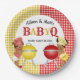 Grillen über das Geschlecht Rot-Gelb-Gingham-Baby Pappteller