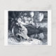 Grimischer Sensenmann 1 Vintage Postkarte In dieser Schwarz-Weiß-Holzschnitt-Todeskunst von william seltsam um 1888 möglicherweise aus seiner Serie " Todestat " ein robetener grimmiger Sensenmann, der einen Schwung weg von einem idylischen Ufer oder Flussufer mit Pasturalmen und Landschaft sowie ein Haus im Hintergrund trägt.
