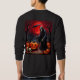 Eine abschreckende Darstellung des grimmigen Sensenmanns inmitten von Kürbis, Schädeln und kargen Bäumen unter dem Glühen eines roten Mondes. Ideal für Halloween-Themen und für unheimliche Herbstabende.