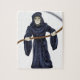 Eine Illustration eines grimmigen Sensenmanntodescharakters, der eine Sense hält