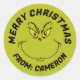 Grinch Face | Frohe Weihnachten Runder Aufkleber