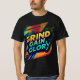 Ce design dynamique et énergique présente l'expression de motivation "Grind, Gain, Glory" dans une police audacieuse et multicolore. Le texte est stylisé avec des lignes et des formes dynamiques, créant un sentiment de mouvement et d'énergie. L'esthétique générale est moderne et attrayante, ce qui en fait un design idéal pour un t-shirt ou d'autres vêtements.