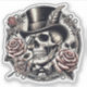 Erhöhen Sie Ihr Zubehör mit unserem Grinning Skull in Top Hat Aufkleber. Dieser auffällige Aufkleber zeigt einen grinsenden Schädel mit einem Hut und Monokel, umgeben von verzierten Viktorianischen Schnörkeln und Rose. Dieser Aufkleber ist perfekt geeignet, um Ihren Laptop, Ihre Wasserflasche oder Ihr Notebook mit einer Touch von dunkler Eleganz zu versehen. Er ist aus hochwertigem Vinyl gefertigt und sorgt für eine lange Lebensdauer. Ideal für Gothic- und Steampunk-Liebhaber, ist es eine bemerkenswerte Ergänzung zu jeder Sammlung. Ein großartiges Geschenk für Freunde und Familie, die ein einzigartiges und künstlerisches Dekor Liebe.