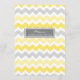 Menu de dîner de mariage dans jaune citron lumineux, gris élégant et blanc avec le rétro motif de zigzags de chevron d'amusement, personnalisable avec vos détails et disponible dans les produits assortis de mariage.