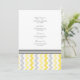 Menu de dîner de mariage dans jaune citron lumineux, gris élégant et blanc avec le rétro motif de zigzags de chevron d'amusement, personnalisable avec vos détails et disponible dans les produits assortis de mariage.