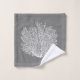 Serviette sertie dans un motif sous-marin de coraux de ventilateur superposés dans les nuances argent clair à graphite gris / gris profond avec blanc sur un arrière - plan gris moyen