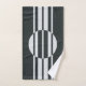 Un motif rétro abstrait de style mod en gris fusain et marteau blanc avec des cercles et des rayures en alternance de couleurs.