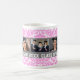 Classe personnalisable de modèle de collage de photo de tasse faite sur commande d'obtention du diplôme d'année dans le motif vintage rose et foncé lumineux de damassé florale classique de gris de charbon de bois et et blanche. Grands cadeaux personnalisés d'une photo pour le nouveau diplômé.