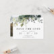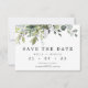 Mariage de feuillage vert gris Enregistrer la carte Date arrangement de feuillage gris et vert rustique mais moderne avec un mariage feuille d'eucalyptus enregistrer la carte date. Ce design a une allure moderne et comprend la photo du couple, qui peut être enlevée, au dos de la carte. Idéal pour un couple ayant une ferme rurale ou un mariage à thème verdoyant.