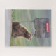 Grizzly bear scratches a roadside sign in Sable Pass, Denali National Park, Alaska