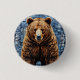 Lebhafte Kunstwerke, die einen Bären mit einem reichhaltigen, strukturierten Pelzmantel darstellen, Set vor einem Flickwerk in Blau- und Grautönen. Der Bär ist imposant und lebensecht und erobert die Aufmerksamkeit mit seinen realistischen Merkmalen.