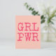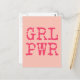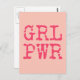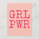 GRLPWR (girlpower) Postcard, mit lustigem Zitat: 'GRL PWR' in Schreibmaschinentypografie in heißen Rosa.
