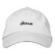 Groom Baseball Hats, schwarzer Text auf Weiß Bestickte Kappe