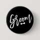 Groom Bow Tie White Script Bridal Party Wedding Button