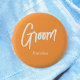 Groom Orange White Script Wedding Button. Karo unten in unserer Shop-Kollektion für passende Artikel.