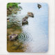 Eine kleine Entengruppe, die sich am Ufer eines Teiches pflegt.