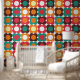 Retro-inspired floral pattern featuring bold geometric flowers in warm earthy tones. Perfect for home decor, fabric, stationery, and modern boho designs. Eye-catching mid-century style that adds a trendy vintage touch to any product.