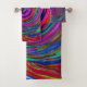 Groovy Abstrakt Retro Magenta Dark Rainbow Swirl Badhandtuch Set
