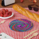 Groovy Abstrakt Retro Magenta Dark Rainbow Swirl Pappteller