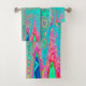 Dieses Coole, farbenfrohe Badetuch-Set besticht durch eine Groovy Abstrakt Retro Türkis Blau und Regenbogen-Farben, Atomic Waves, die mit Aquamarine, Rot, Gelb und Kalkgrün bemalt werden. Das Ergebnis ist ein buntes, groovatives, abstraktes Design, dass Sie Liebe!