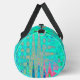 Diese Coolen großen Duffle-Taschen verfügen über ein Groovy Abstrakt Retro Türkis Blau und Regenbogen Farben Atomic Waves Gemälde mit Aquamarine, Rot, Gelb und Lime Green Akzenten. Das Ergebnis ist ein buntes, groovatives, abstraktes Design, dass Sie Liebe!