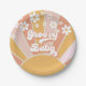 Groovy Baby! Retro inspiriert Baby Dusche Teller mit 70er Jahren Stil Gänseblumen und boho Schriftart und Farben.